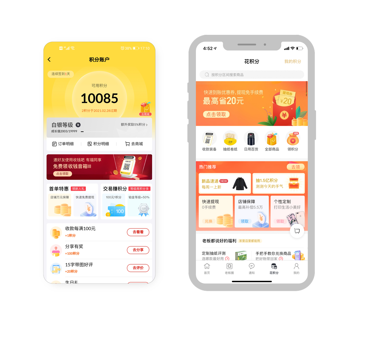 商家使用收钱吧收款的每一笔钱,都可以获得相应的积分,积分可在花积分商城中兑换好物